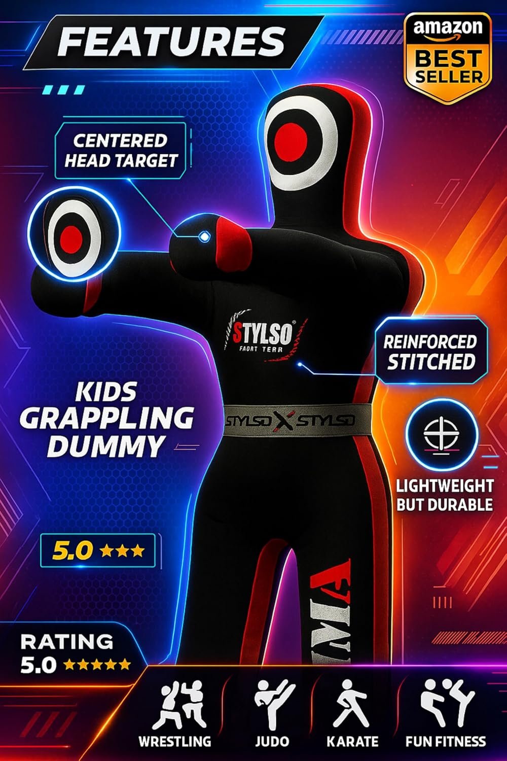 - 👍 Versatile for All Martial Arts Styles Train for Wrestling, Brazilian Jiu Jitsu, BJJ, MMA, or Judo — this unfilled grappling dummy adapts to every technique. Perfect for beginners to intermediate youth athletes.